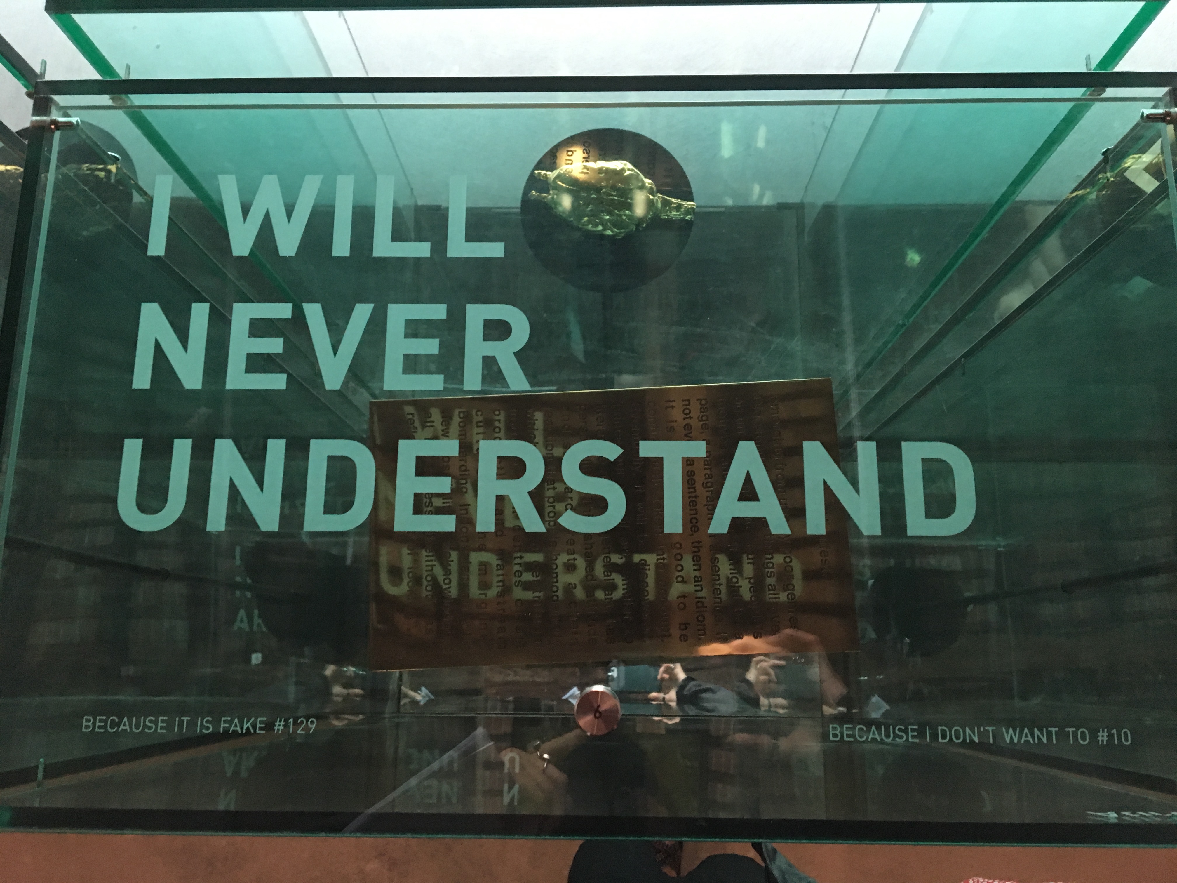 A table near the exit of the pavilion allowed visitors to type in the numbers of the cases they visited, where they would receive a receipt with the sayings from each case they visited. This interactive narrative was an attempt to create a new experience of the biennial for visitors. Its structure also meant that each visitor likely came out with an entirely different constructed story.